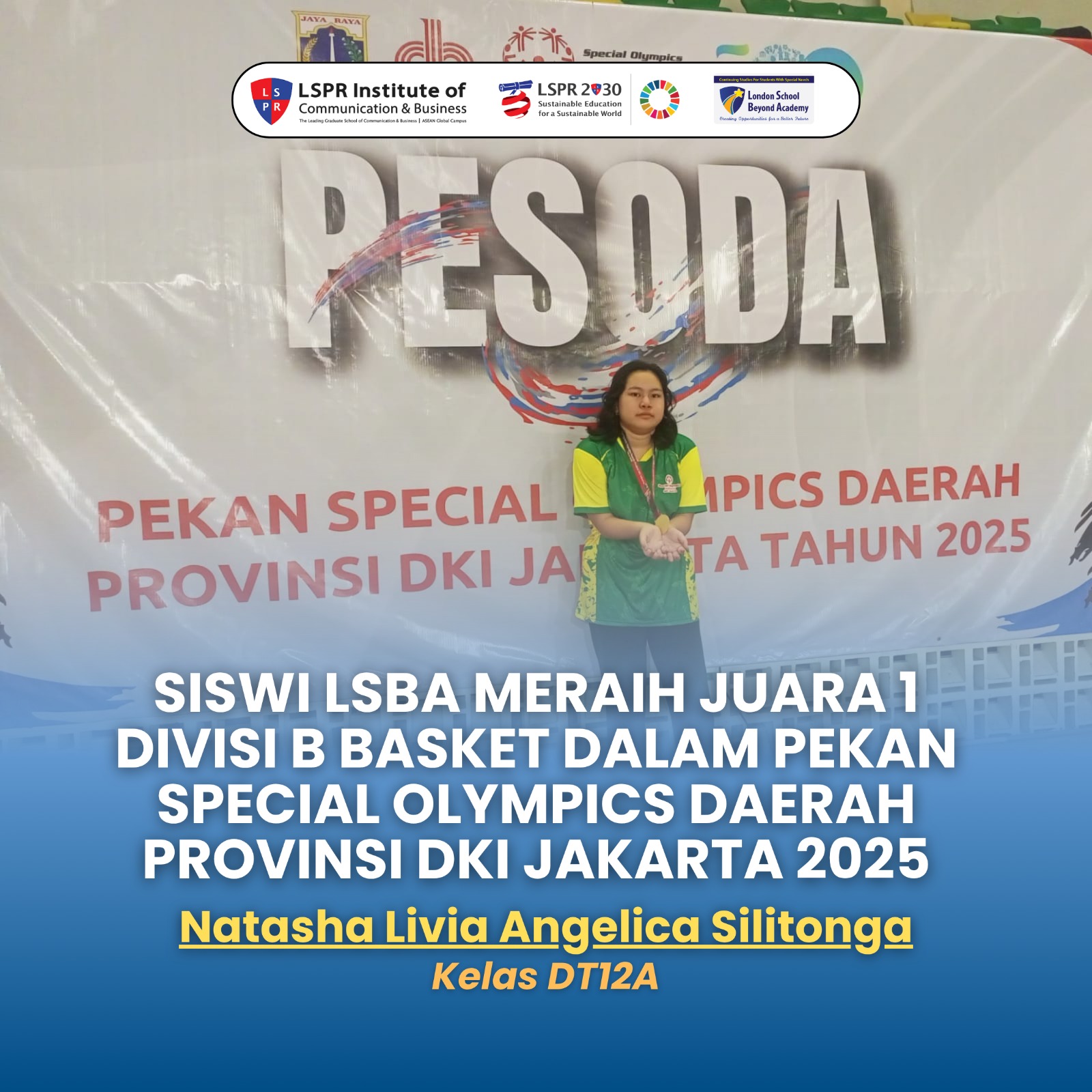 LSBA Bangga! Natasha Livia Angelica Silitonga meraih Juara 1 Divisi B Basket di Pekan Special Olympics Daerah Provinsi DKI Jakarta 2025.